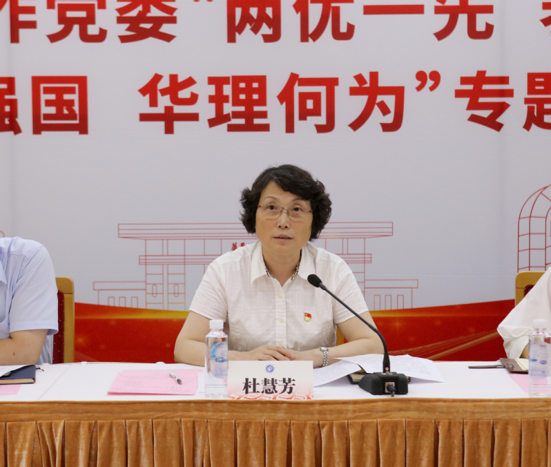 为庆祝中国共产党成立102周年,持续推动学习贯彻习近平新时代中国特色社会主义思想主题教育走深走实,6月27日下午,机关工作党委在逸夫楼演讲厅召开“两优一先”表彰会暨“教育强国 华理何为”专题大讨论。校党委书记杜慧芳出席会议并讲话,机关工作党委委员、机关党支部书记、特邀发言代表、机关“两优一先”受表彰对象、获评学校“两优一先”的机关代表等参加会议。会议由机关工作党委副书记周晓梅主持。